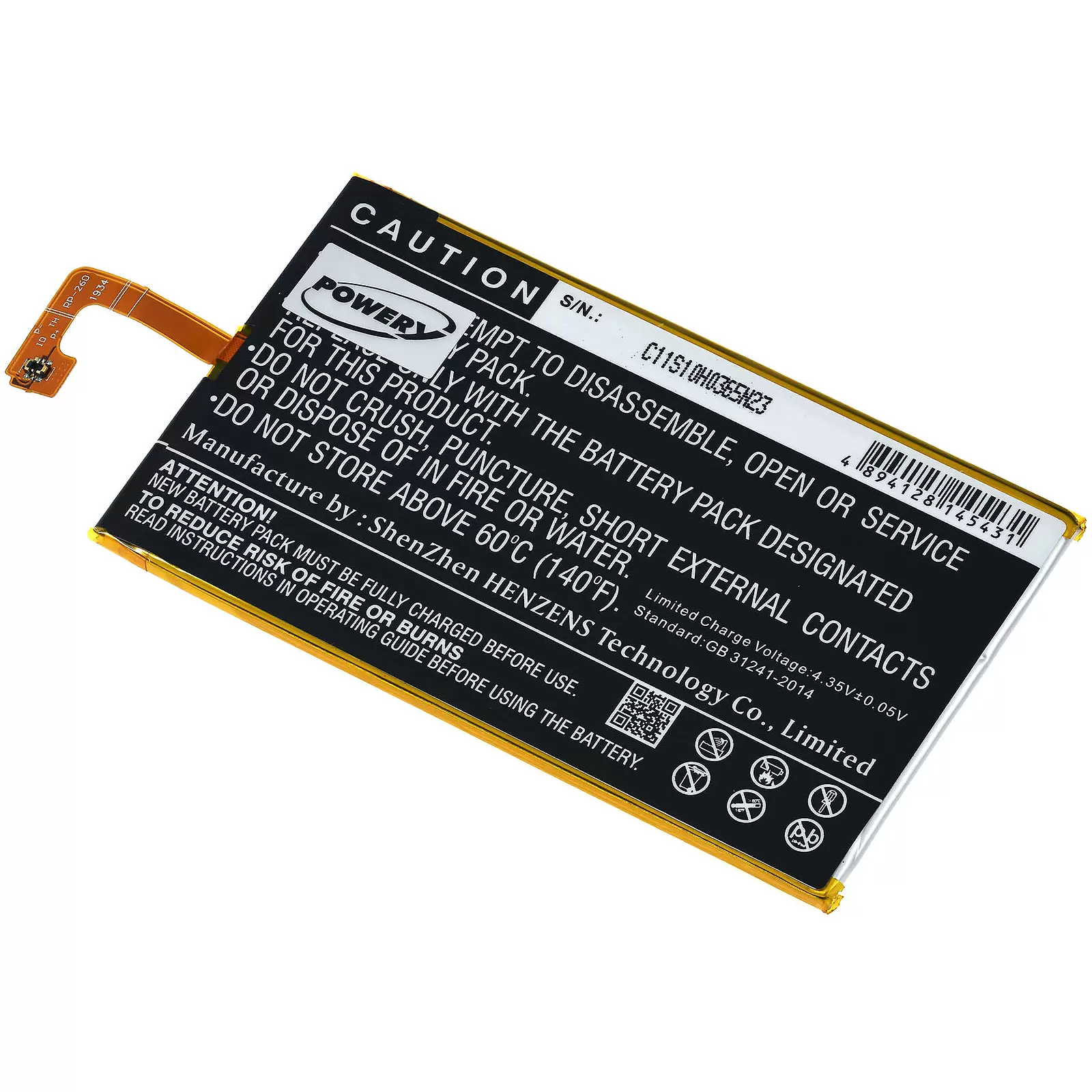 Produktinformationen "Akku passend für Outdoor-Smartphone, Handy CAT S40 / Typ 458002-S40"