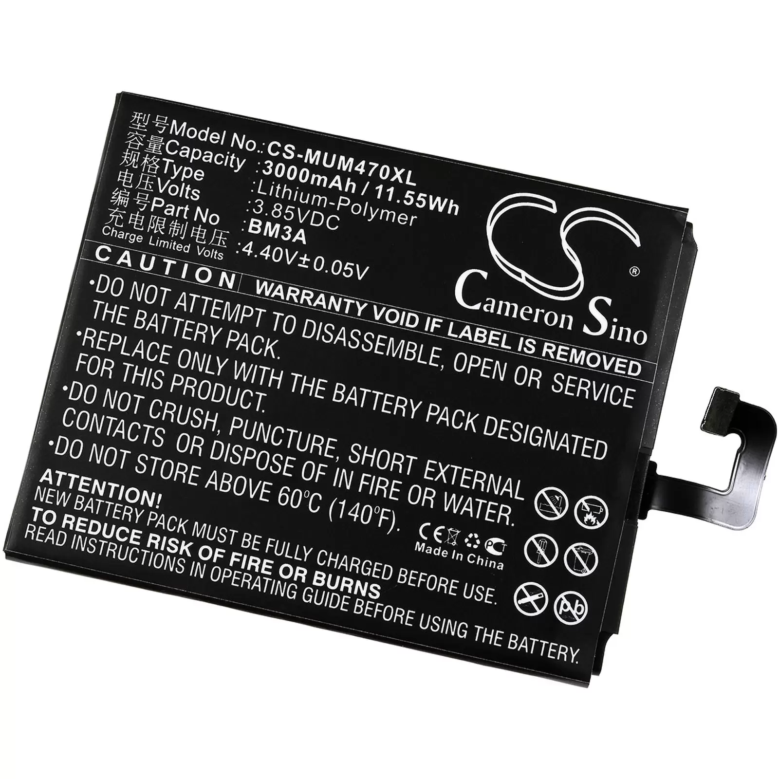 Produktinformationen "Akku für Smartphone Xiaomi Mi Note 3 / Typ BM3A"
