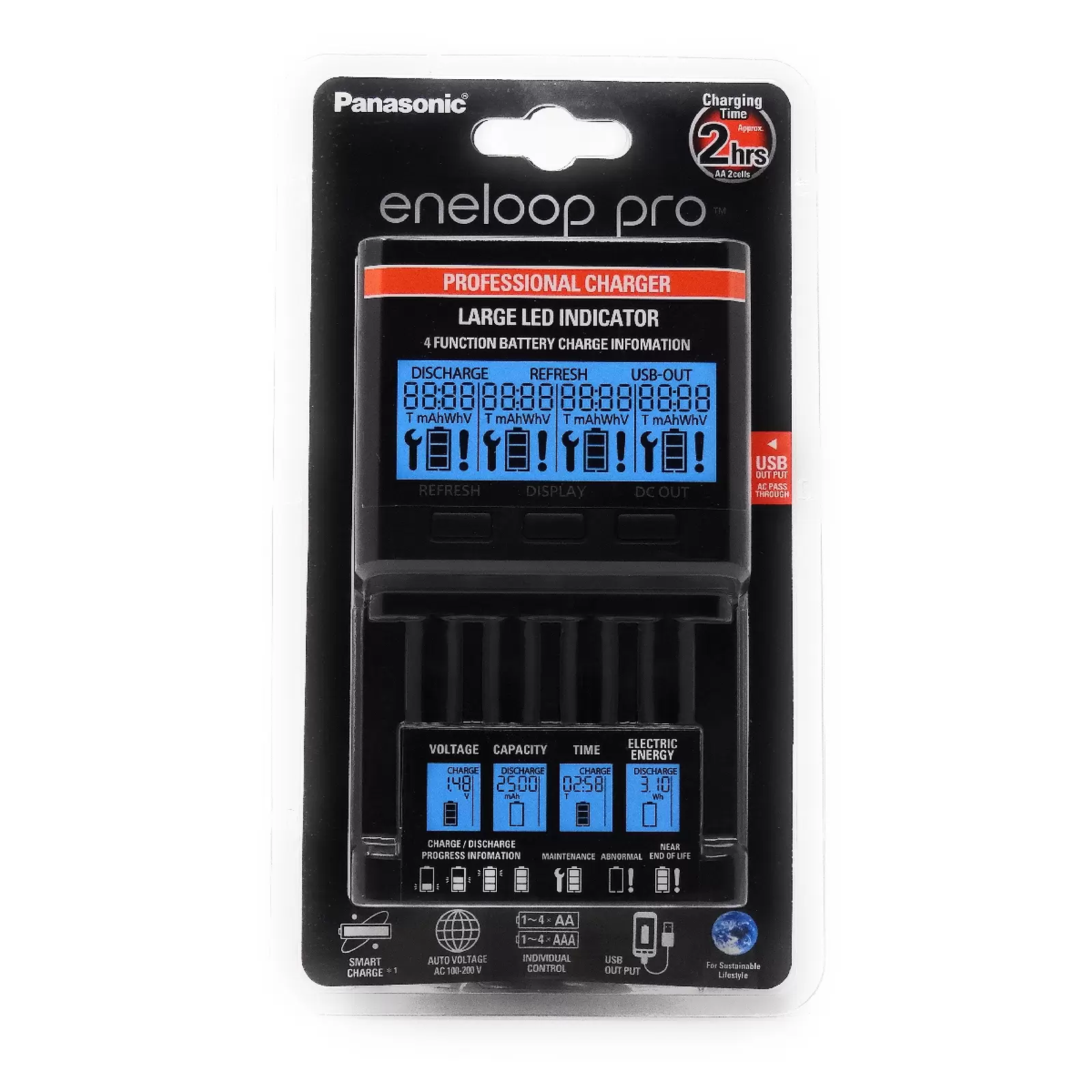 - Ladezeit (für eneloop): 4x AA: 3Std / 2x AA: 1,5Std